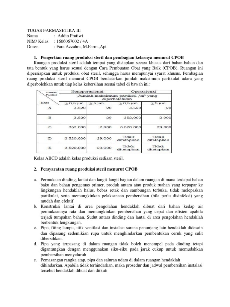 Pembagian ruang steril menurut cpob pdf.